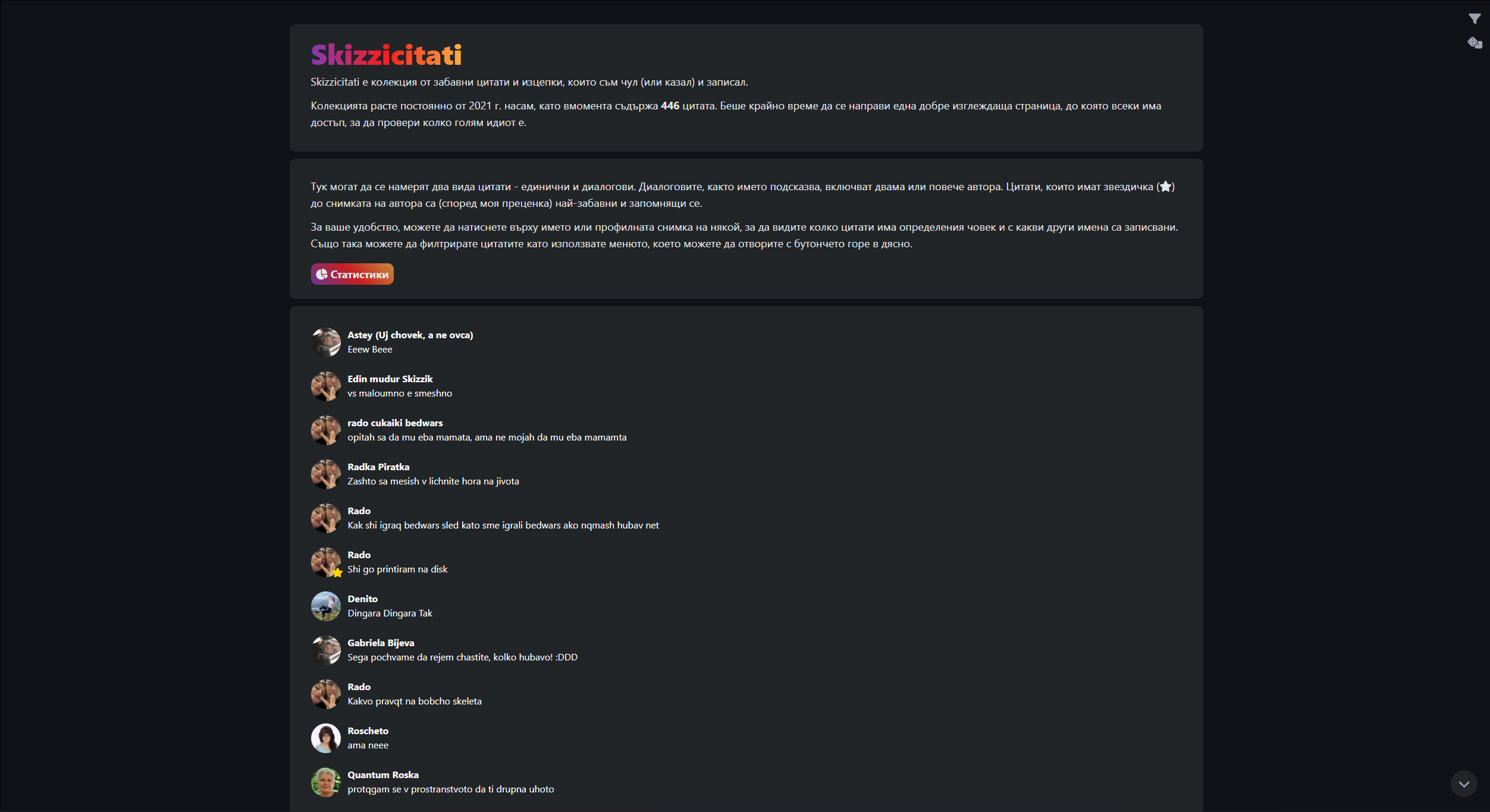 Personal web collection of funny and concerning quotes of friends and strangers